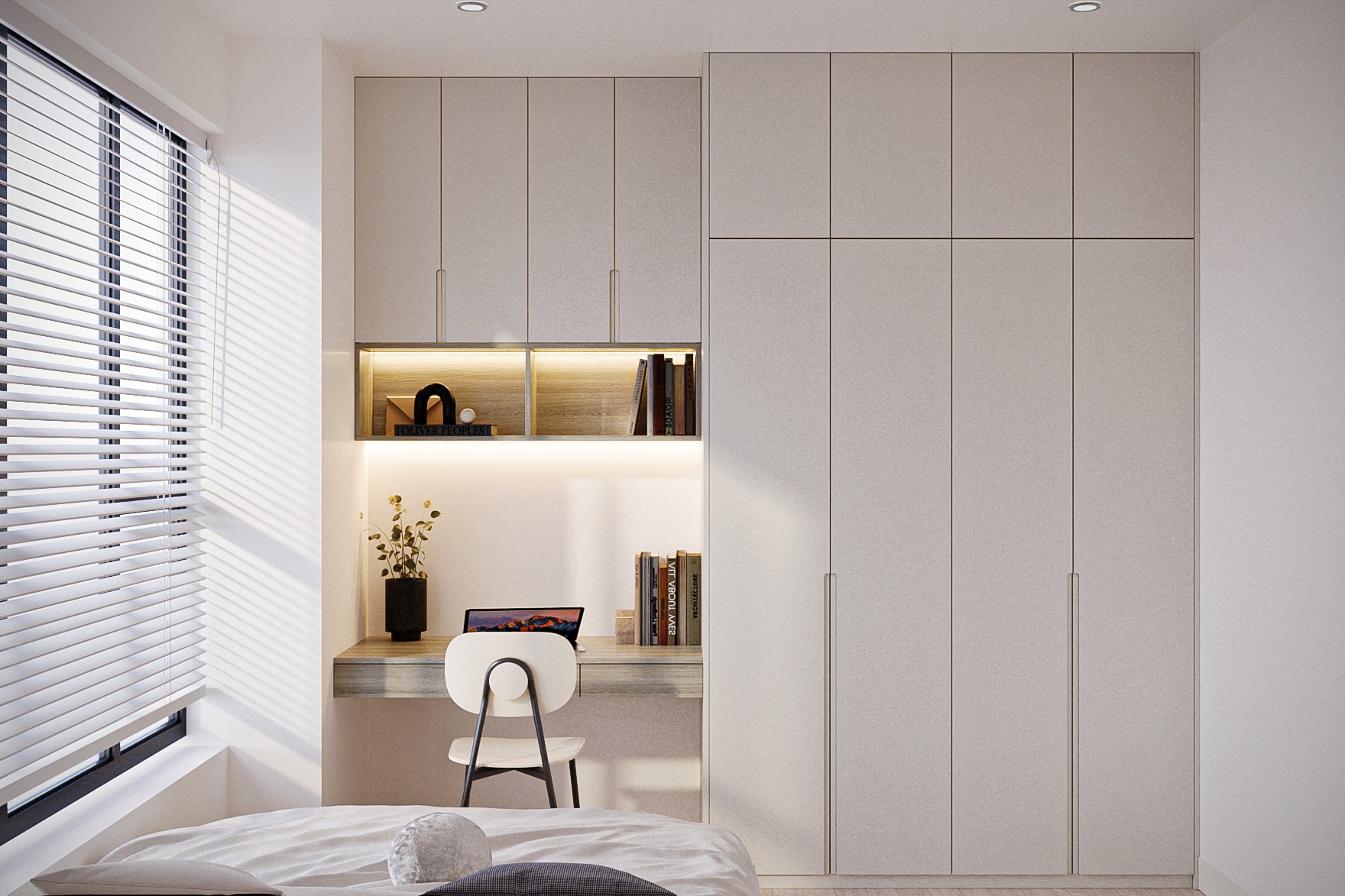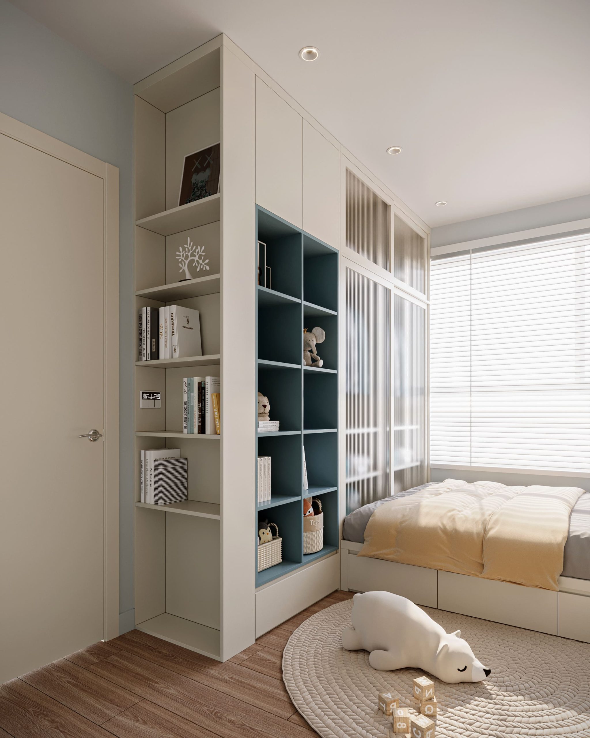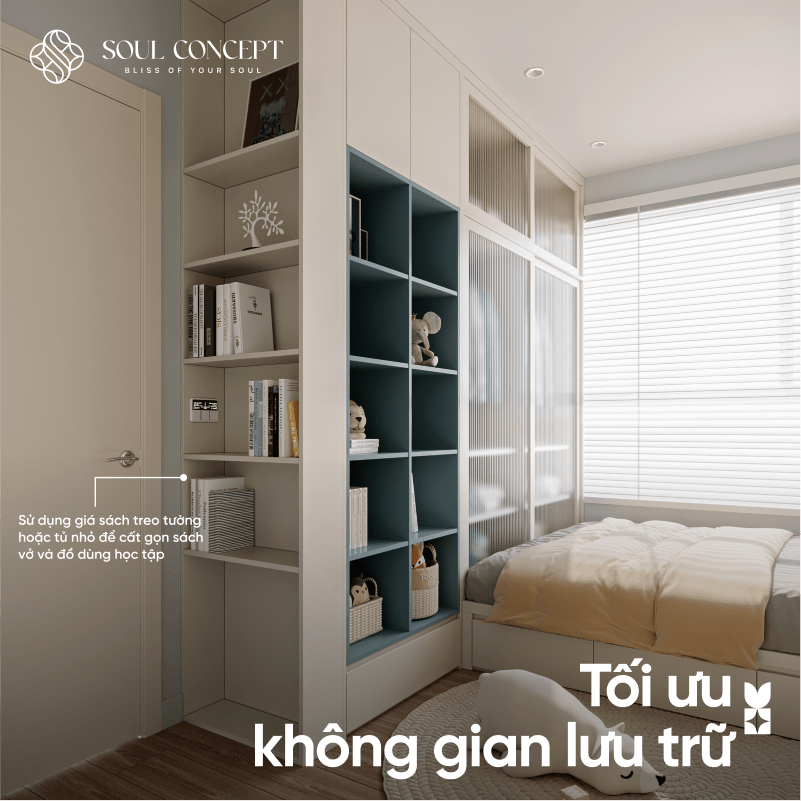 Sử dụng giá sách treo tường hoặc tủ nhỏ để cất gọn sách vở và đồ dùng học tập. Điều này giúp phòng học gọn gàng hơn và tạo thêm không gian cho con đó bố mẹ nhé! Ngoài ra cha mẹ có thể tham khảo những loại tủ âm tường hoặc tủ có nhiều chức năng để có thể tối ưu không gian trong phòng mà vẫn đầy đủ các thiết bị phục vụ cho con trong quá trình học tập.