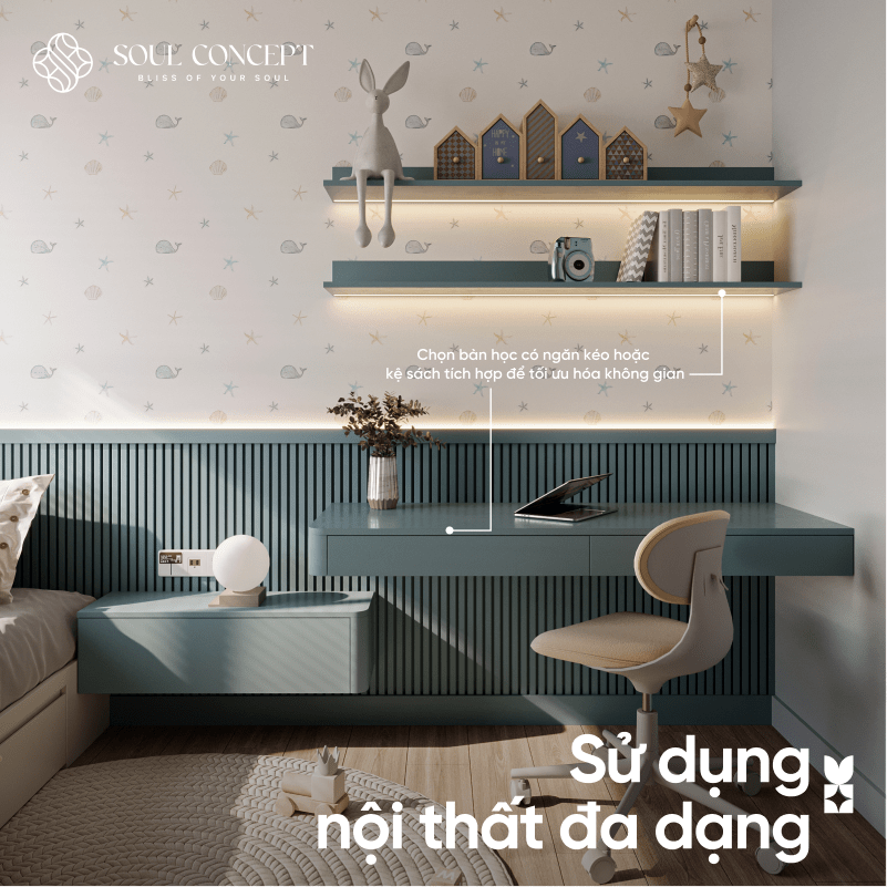 Trên đây là 15+ mẹo thiết kế phòng học nhỏ cho con mà Soul Concept gợi ý đến bạn. Liên hệ ngay với Soul Concept để được tư vấn thêm các tip thiết kế thông minh cho không gian nhà của bạn nhé!
