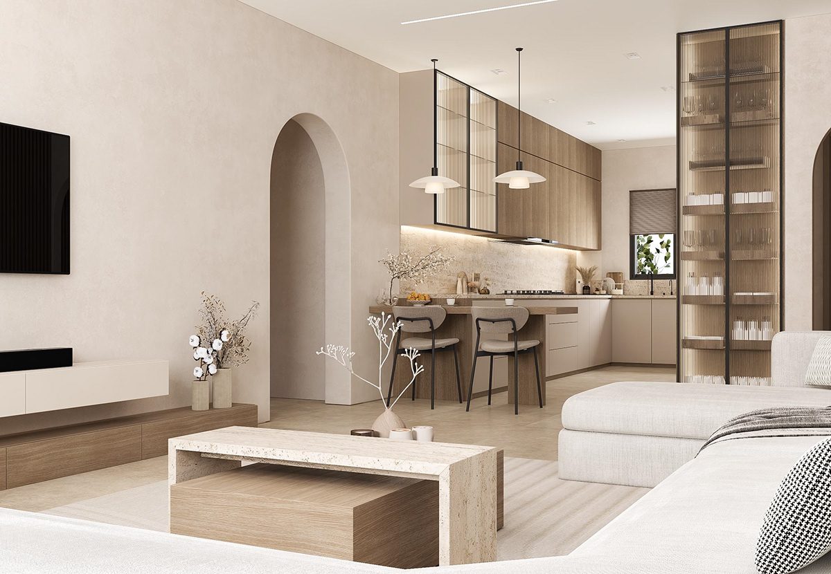 Thiết Kế Bếp Chữ U Trong Phong Cách Japandi