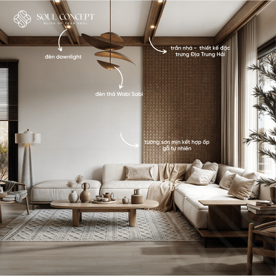 Trong một căn nhà miền Trung tại Việt Nam, sự kết hợp hài hòa giữa phong cách Wabi Sabi và Địa Trung Hải không chỉ là một xu hướng thiết kế nội thất mà còn là một lời tuyên ngôn táo bạo về sự giao thoa văn hóa và nghệ thuật sống. Vẻ đẹp tự nhiên, thô mộc từ triết lý Wabi Sabi được thắp sáng bởi tinh thần nhiệt đới, phóng khoáng của Địa Trung Hải, tạo nên một không gian sống vừa yên bình, vừa tràn đầy năng lượng. Cùng theo dõi bài viết dưới đây của Soul Concept để biết thêm về sự kết hợp tuyệt vời này nhé!