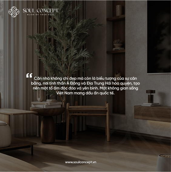 Căn nhà không chỉ là nơi để sống mà còn là biểu tượng của sự cân bằng hoàn hảo giữa tinh thần Á Đông và Địa Trung Hải. Đây là một tổ ấm độc đáo, nơi văn hóa và nghệ thuật hòa quyện, tạo nên một không gian sống Việt Nam mang dấu ấn quốc tế. Sự giao thoa này không chỉ làm phong phú thêm cuộc sống mà còn khẳng định rằng thiết kế nội thất có thể vượt qua mọi khuôn khổ, kể nên những câu chuyện giàu cảm xúc và tràn đầy cảm hứng. Hãy để ngôi nhà của bạn trở thành nơi giao thoa của các nền văn hóa, mang đến không gian sống vừa hiện đại, vừa đậm chất nghệ thuật!
