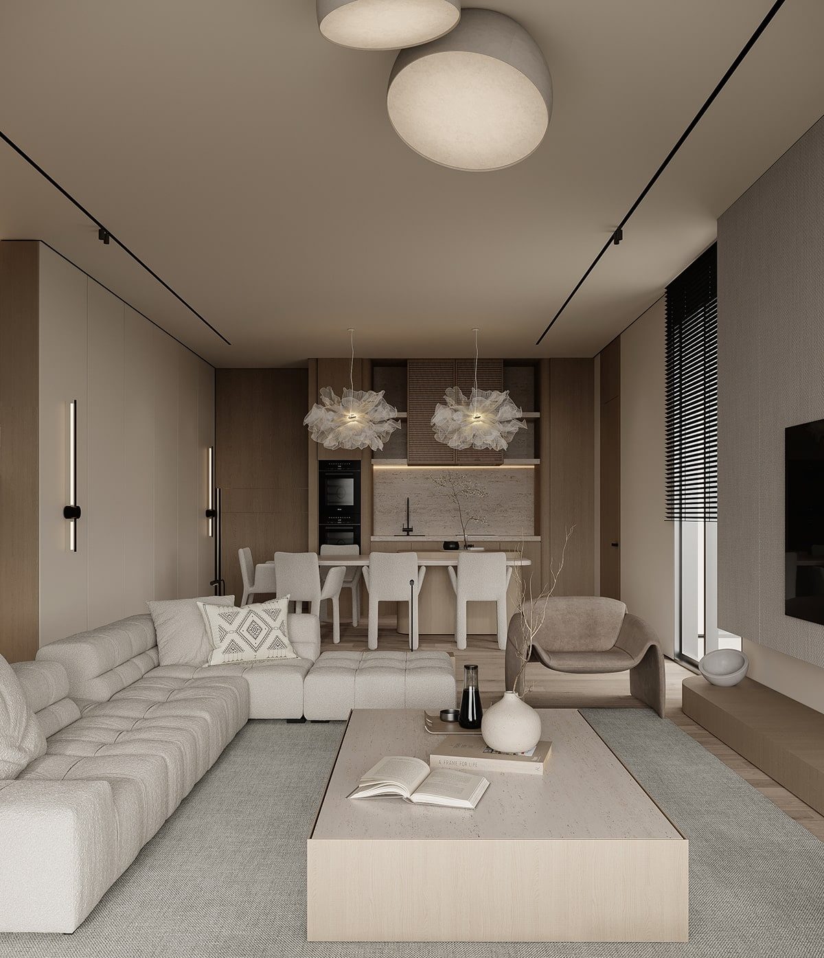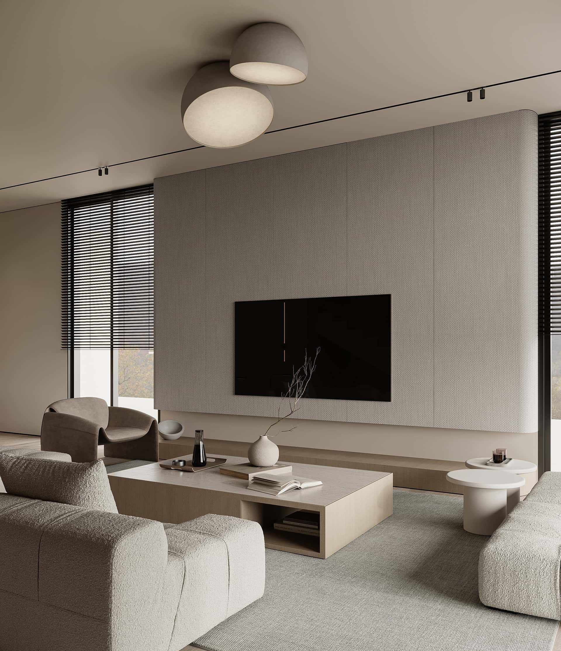 Khi chọn vật liệu và đồ nội thất, phong thủy khuyến khích sự cân bằng giữa các yếu tố tự nhiên. Sử dụng gỗ, đá, hoặc kim loại một cách hài hòa để mang lại cảm giác gần gũi nhưng vẫn tinh tế. Các vật phẩm phong thủy như bình phong, đèn chùm, hoặc tranh phong cảnh cũng có thể được sử dụng để tạo sự cân bằng.