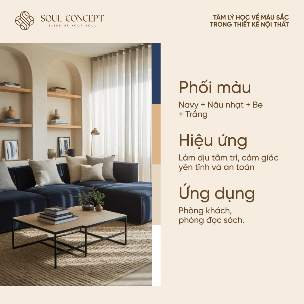 Bảng màu: Navy + Nâu nhạt + Be + Trắng