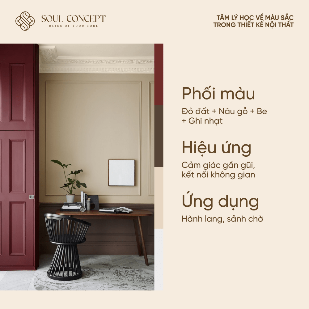 Bảng màu: Nâu gỗ + Đỏ đất + Be + Ghi nhạt